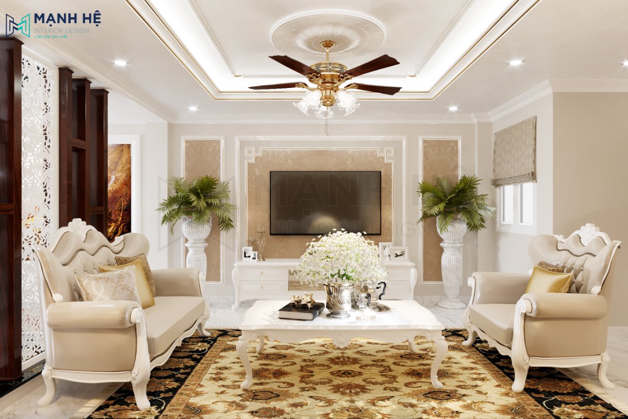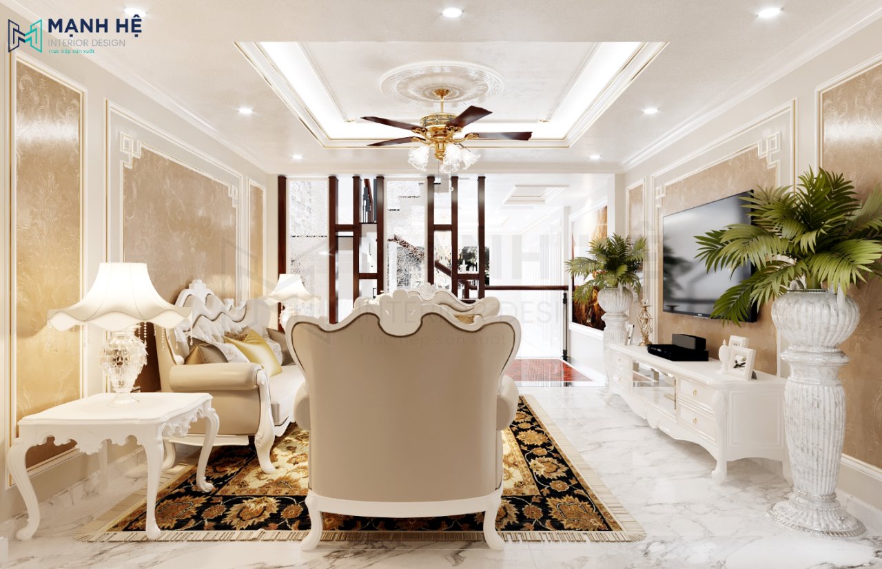 Mẫu nội thất nhà cấp 4 mái thái dạng ống phong cách Tân Cổ Điển