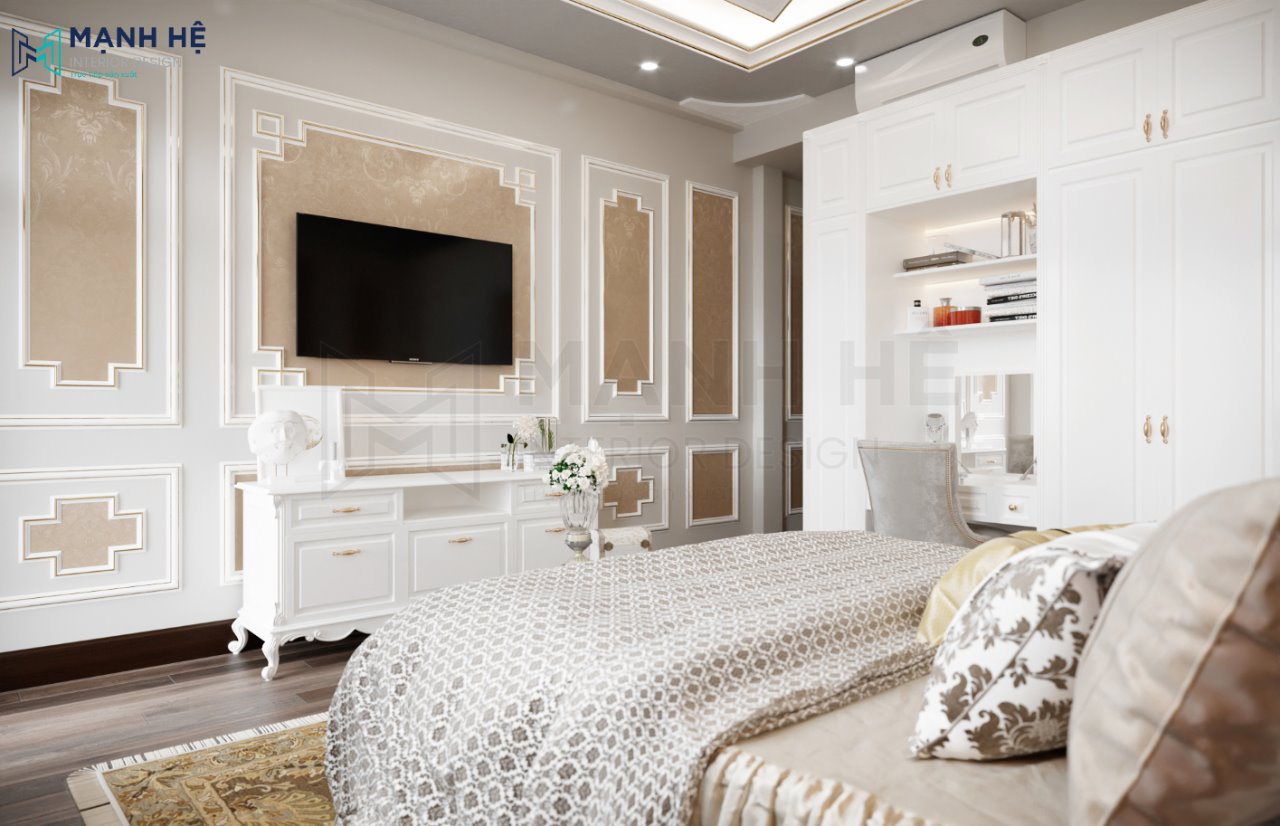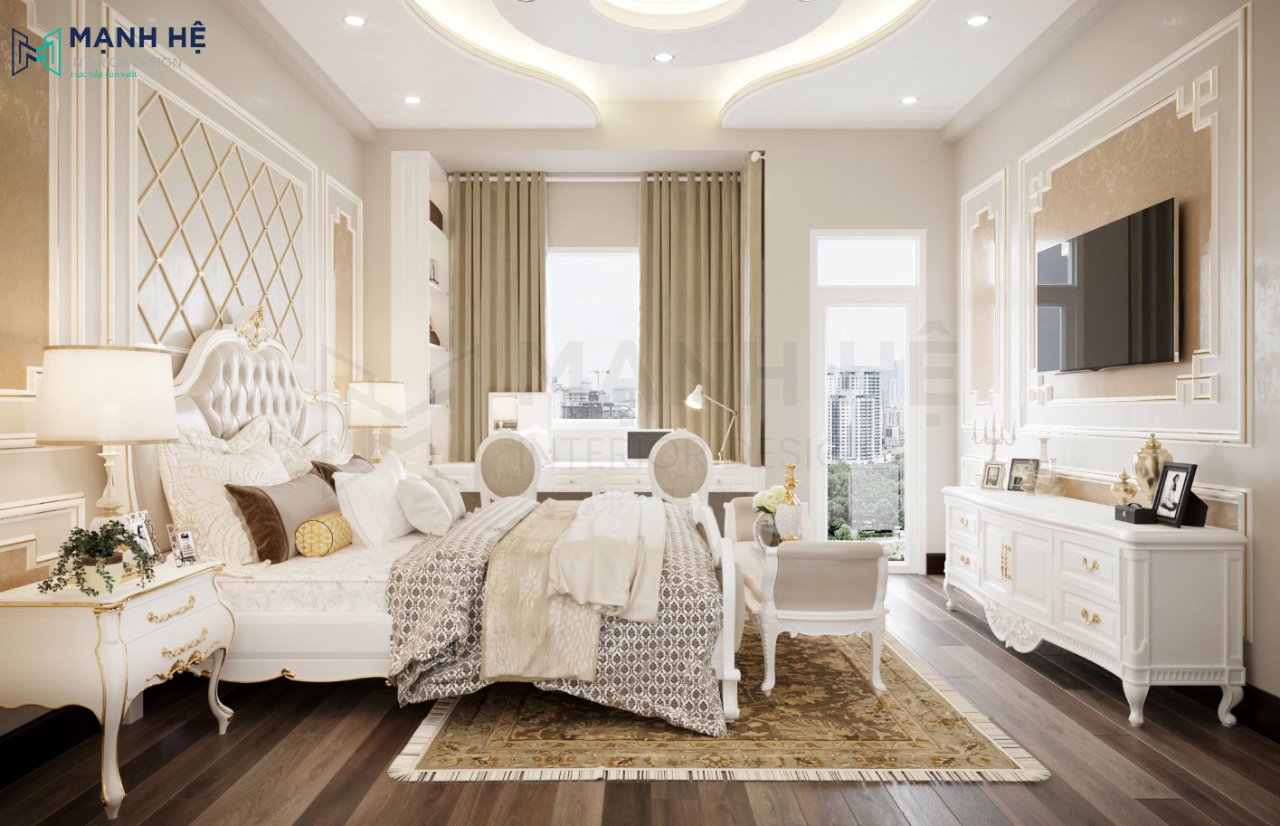 Đây là phong cách thiết kế nội thất đòi hỏi gia chủ cần có ngân sách kha khá một tí, bởi để tôn lên vẻ đẹp đẳng cấp của phong cách Tân Cổ Điển, những chất liệu sử dụng thường là nội thất cao cấp: gỗ tự nhiên sơn trắng, kim loại mạ vàng cao cấp, đá vân mây tự nhiên ốp tường,...